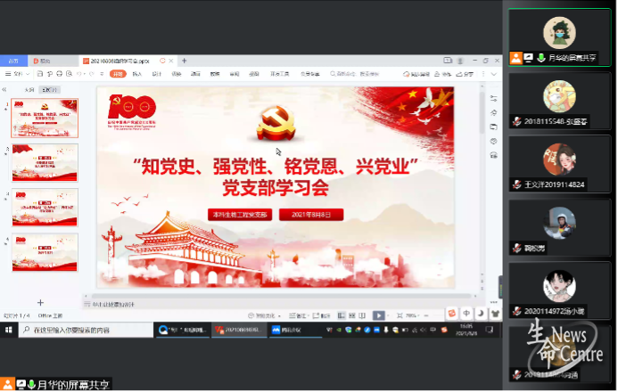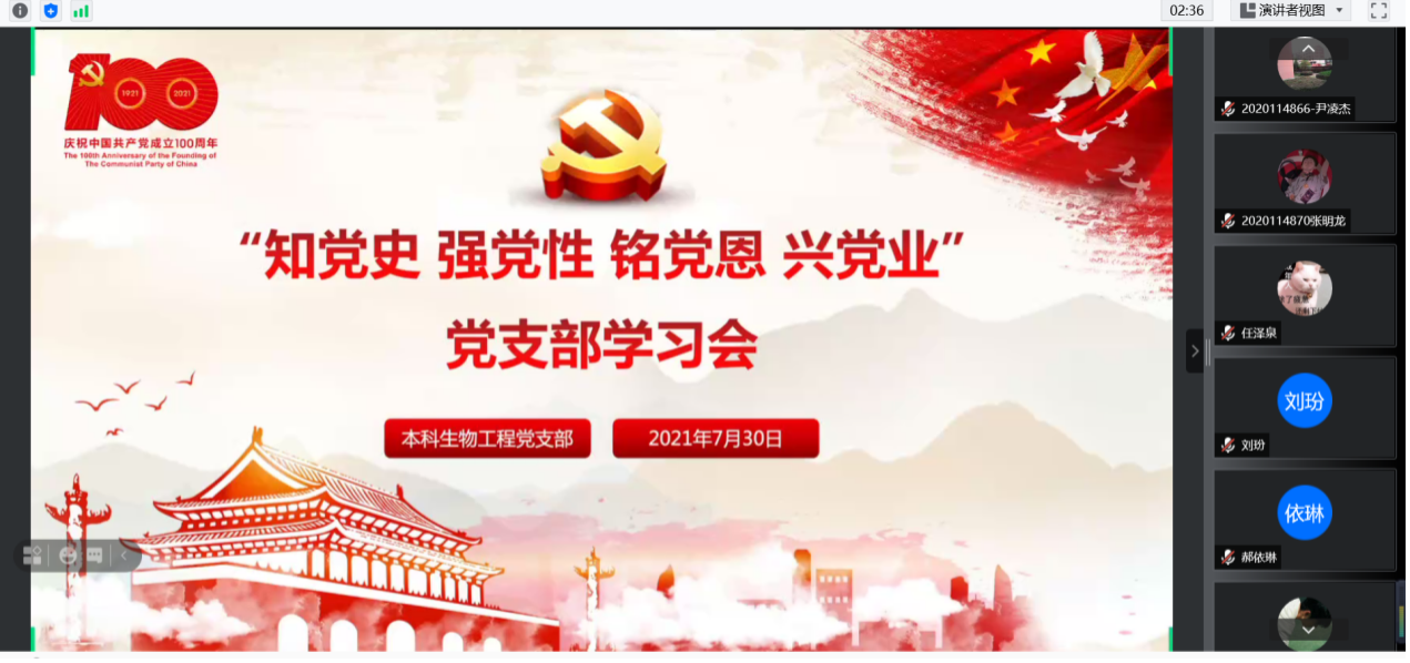 本科生物工程党支部“知党史 强党性 铭党恩 兴党业”线上学习会顺利开展