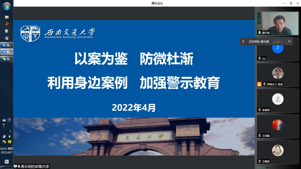 2022-04-112022年4月7日,成人直播 生物工程系教工党支部在线上开展师德师风警示教育活动,学院党委书记葛永明参加并开展了“以案为例,...