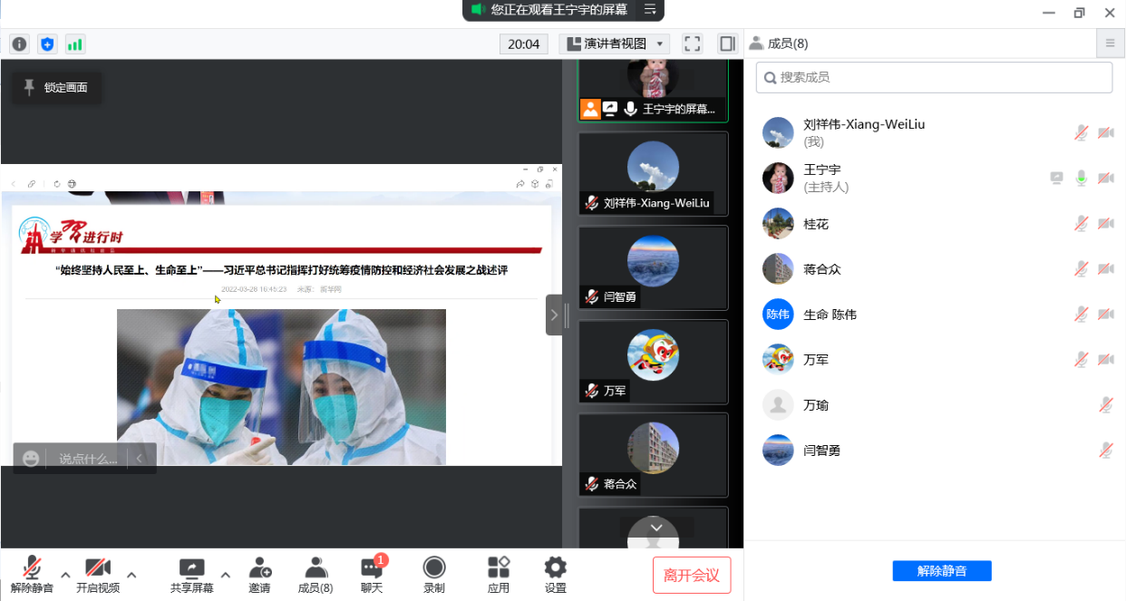 2022-04-192022年4月14日晚8点,成人直播 药学系教工党支部开展“携手同心·共守校园”主题党日活动,活动由党支部书记王宁宇主持。党员们共同学习了20...