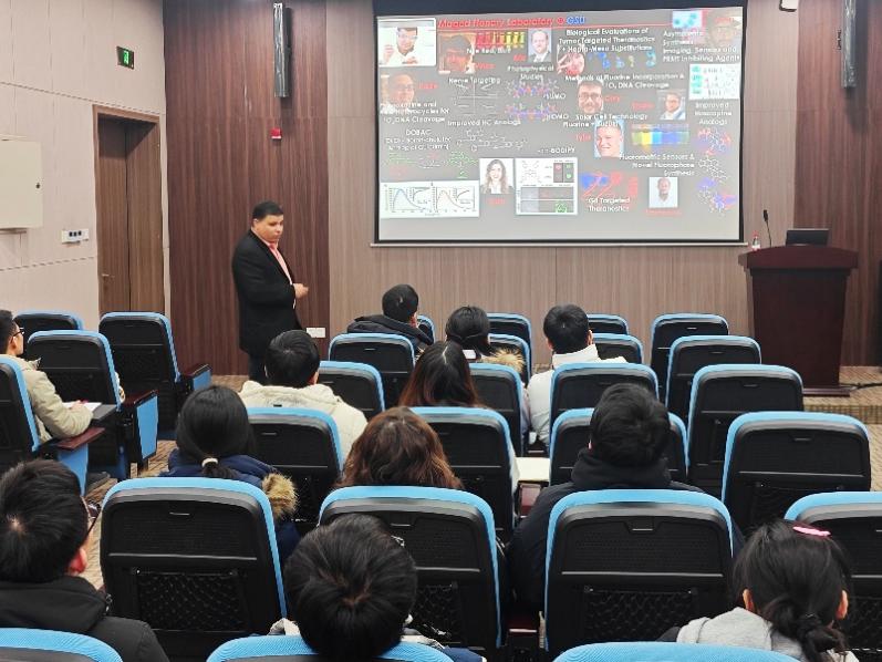 讲座结束后,学生们积极提问,就如何提高活性氧产生、降低染料毒性、成像引导治疗以及探针设计等问题向Maged Henary教授请教。Maged Henary教授耐心解答,并分享了他在这些领域的最新研究成果和未来展望。