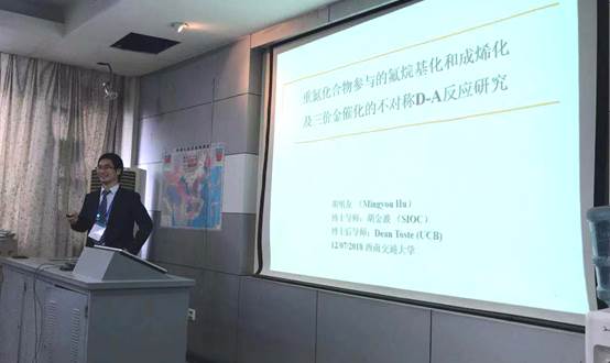 美国加州大学伯克利分校博士后胡明友学术报告“重氮化合物参与的氟烷基化和三价金催化的不对称D-A反应研究”