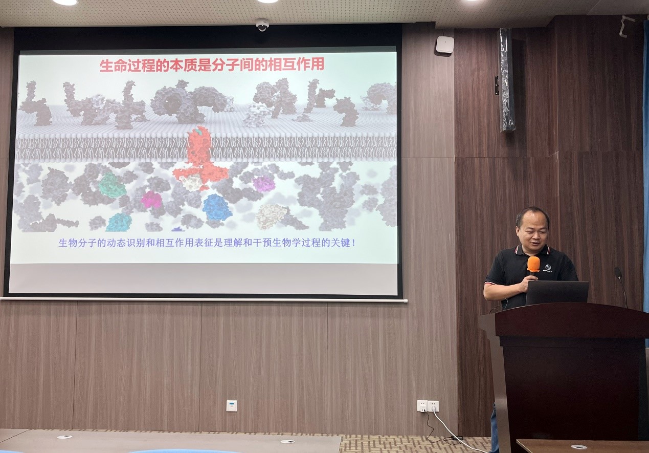 王方军研究员主要致力于生物大分子质谱新仪器、新方法及其在生命科学领域的应用研究,搭建了世界首台50-150 nm可调波长极紫外激光超快解离-串联质谱。在报告中详细介绍了基于质谱技术的发展历史、应用领域、研究现状、未来方向以及王方军研究员课题组提出的位点光解离碎片产率和原位化学标记效率定量表征蛋白质结构变化的两种质谱分析新原理,蛋白质-纳米材料界面相互作用精细结构的质谱分析新方法。
