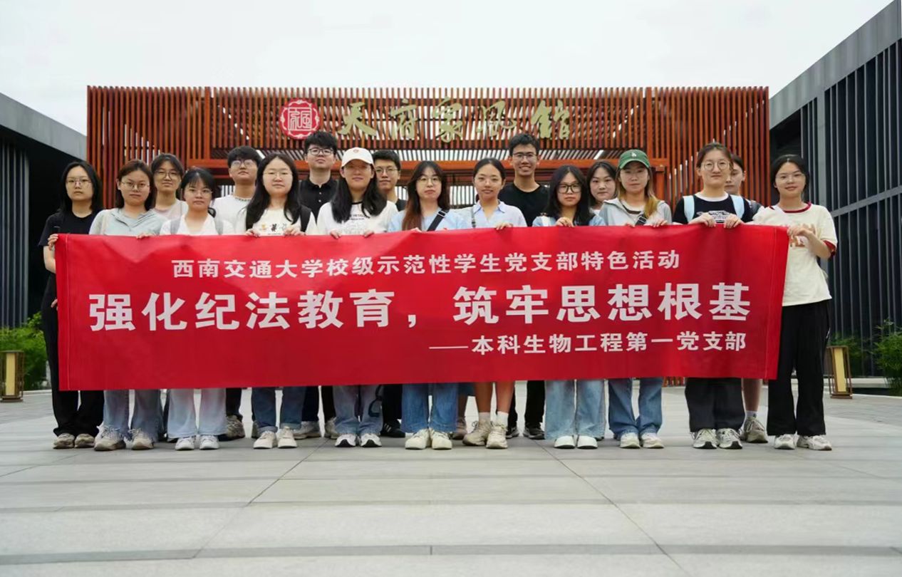 本科生物工程第一党支部党员赴四川省廉洁文化教育基地“天府家风馆”开展“强化纪法教育,筑牢思想根基”党支部特色活动实践研学环节。学院党委书记黄春蓉,党委副书记、纪委书记朱炜参加本次活动。