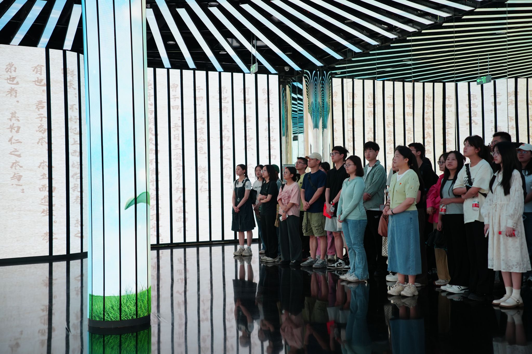 6月1日,在展馆讲解员的带领下,师生一行人一同参观天府家风馆,在灰瓦白墙、茂林修竹中,一同感受家庭家教家风的熏陶,学习老一辈无产阶级革命家的“巍巍高风”和巴蜀革命先烈的“英烈凛风”。