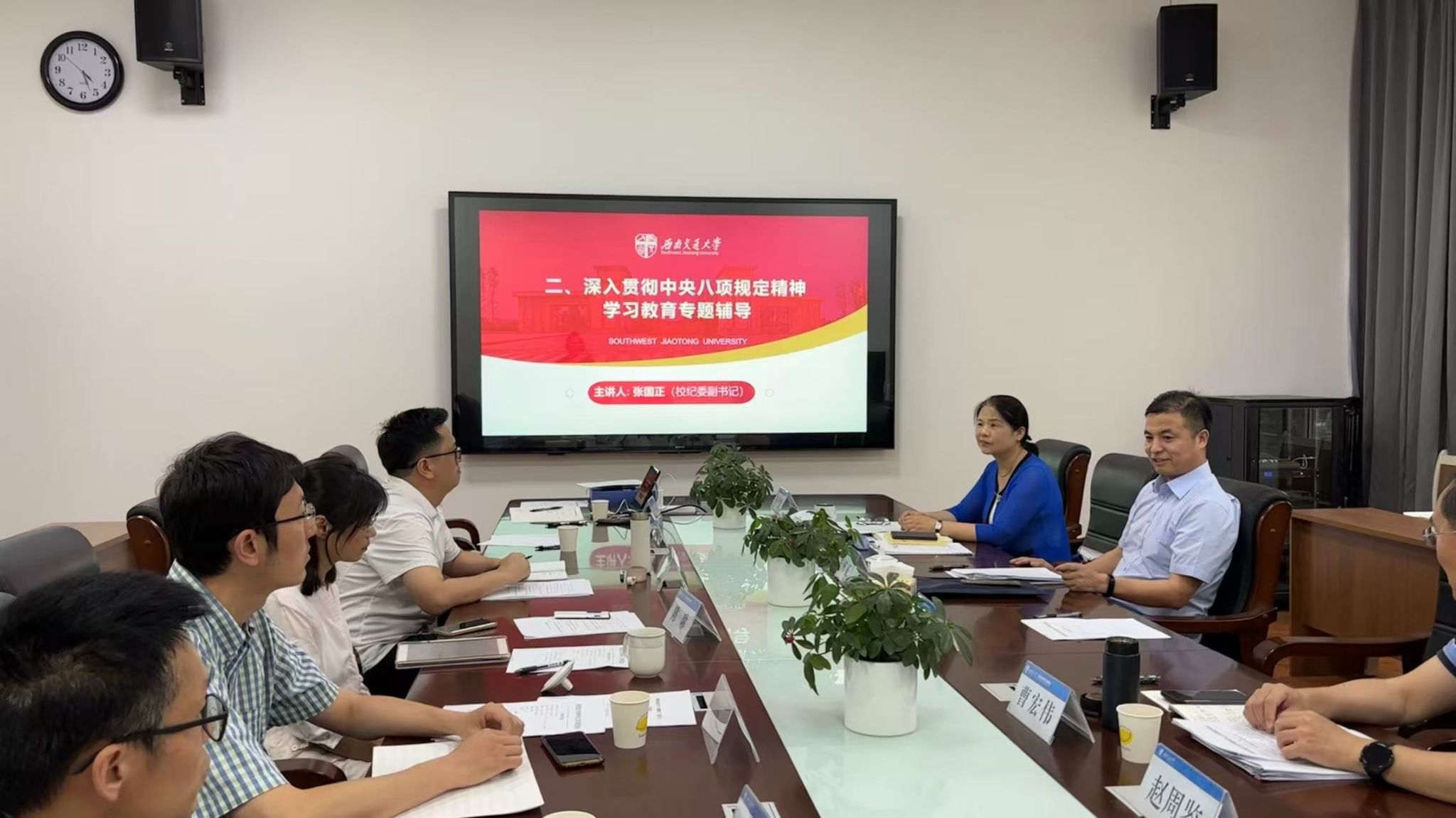党委理论学习中心组在犀浦校区2314会议室进行2025年第5次集体学习(扩大),邀请校纪委副书记张国正进行深入贯彻中央八项规定精神学习教育专题辅导,并开展坚定不移贯彻总体国家安全观专题学习。学院领导班子成员、党委委员、纪委委员、教工党支部书记及科职领导干部参加了学习会,会议由党委书记黄春蓉主持,党建工作联络员曹宏伟列席指导。