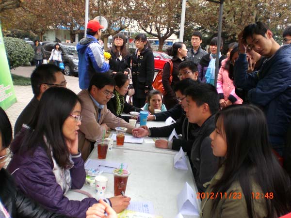 的五位专家学者准时到场,而此时现场已有一些老年人和同学在等候。五位专家一就座,就开始细心听取咨询者们反映的关于自身健康和营养方面的问题。他们耐心地帮咨询者进行分析和指导,给出了自己的意见和建议,中医药“大夫”们还现场开具了处方,让咨询者们心满意足。过往的很多学生也纷纷赶过来,测量血压、营养咨询、询问病因和预防措施……路过并咨询的人也越来越多,在场专家和党员志愿者们也忙的不亦乐乎,五位老师在现场简单地用完盒饭后马上又投入到了咨询服务中去。尽管天气略显寒意,但丝毫挡不住大家的服务热情,咨询现场一度火热。直至下午五点,仍有不少人前来咨询,老师和志愿者们坚守岗位,竭诚为最后一位咨询者服务完才离开。