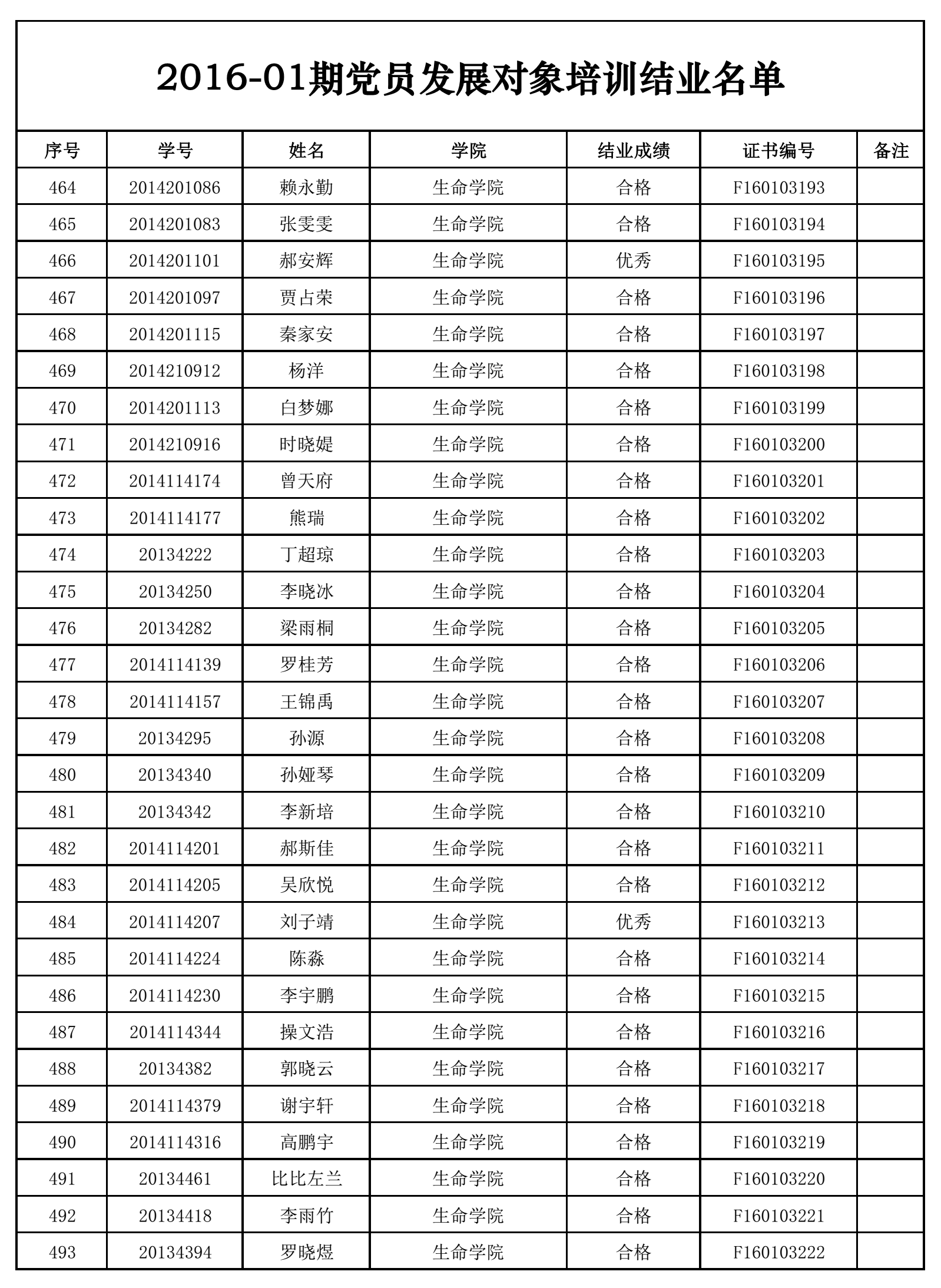 校党委党校开设的2016-01期党员发展对象培训的集中辅导、社会实践等各环节均已结束,党员发展对象培训已经圆满结业。现将本期党员发展对象培训的结业名单公布如下。