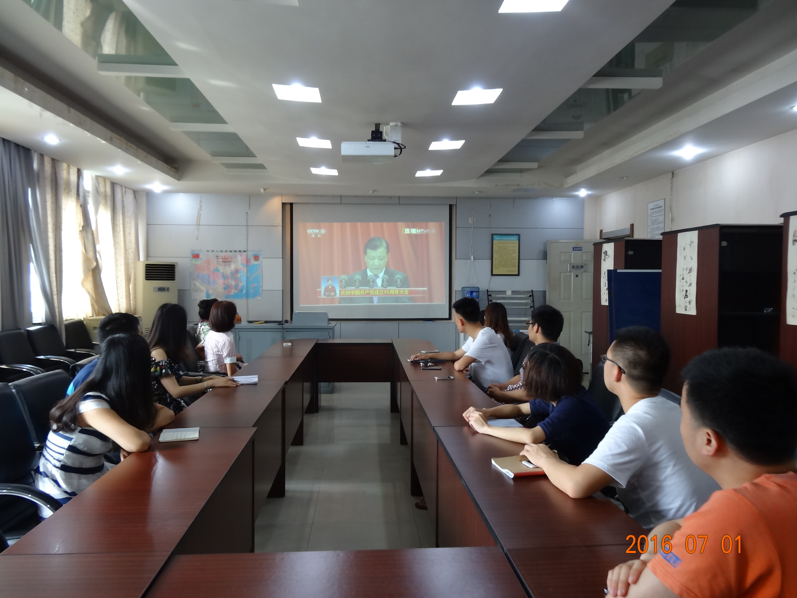 为迎接建党95周年,按校党委统一部署,7月1日上午,成人直播 党委组织学院党员干部、师生代表在3609集体观看了中国共产党成立95周年大会现场直播视频。学院党委书记李卓慧、党委委员贺妍、办公室主任陈琳、研究生党支部书记吴润、李祯、本科生党支部书记黄国强,以及师生代表20余人观看了视频。与此同时,学院师生党员还通过网络形式,在办公室、实验室、宿舍等地收听收看了直播。