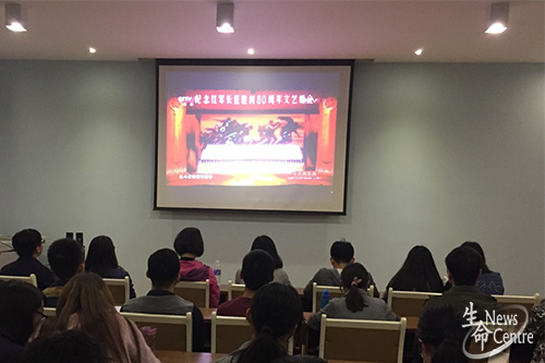 本科生物工程和制药工程党支部组织全体党员、预备党员及党员发展对象在X6502观看由中央卫视直播的《纪念红军长征胜利80周年文艺晚会》。到场的有团委书记高鹏、团委副书记孔琳以及16级辅导员贺薇。
