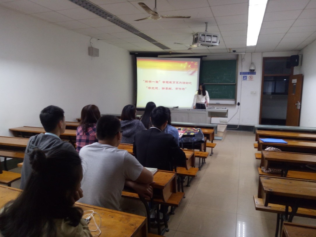 15级硕士一班党支部在九里校区4304A教室开展了“两学一做”之“学先进,讲奉献,有作为”专题学习会,会议由党支部书记李祯主持,支部全体党员和入党积极分子参加了学习。