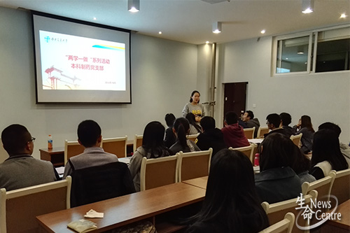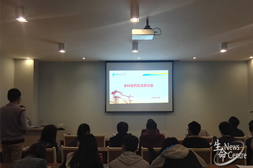 本科制药工程党支部在X6502开展“两学一做”学习教育暨党支部大会。到场的有学院团委副书记孔琳及各位党员同志。