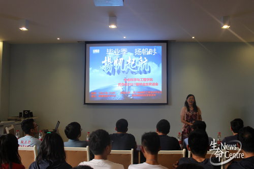 会议伊始,高峰首先为毕业生送上寄语,他希望同学们能够坚持专业的方向,心怀感恩、终身学习,在追逐目标中实现人生价值。接着蒋合众、万军、魏桂花和田原先后为毕业生们送上毕业祝福,并表示在今后的生活中仍然可以为同学们提供力所能及的帮助。在老师们表达对同学们的美好祝福和殷切希望后,学生代表们回顾大学生活并与大家分享毕业感想。