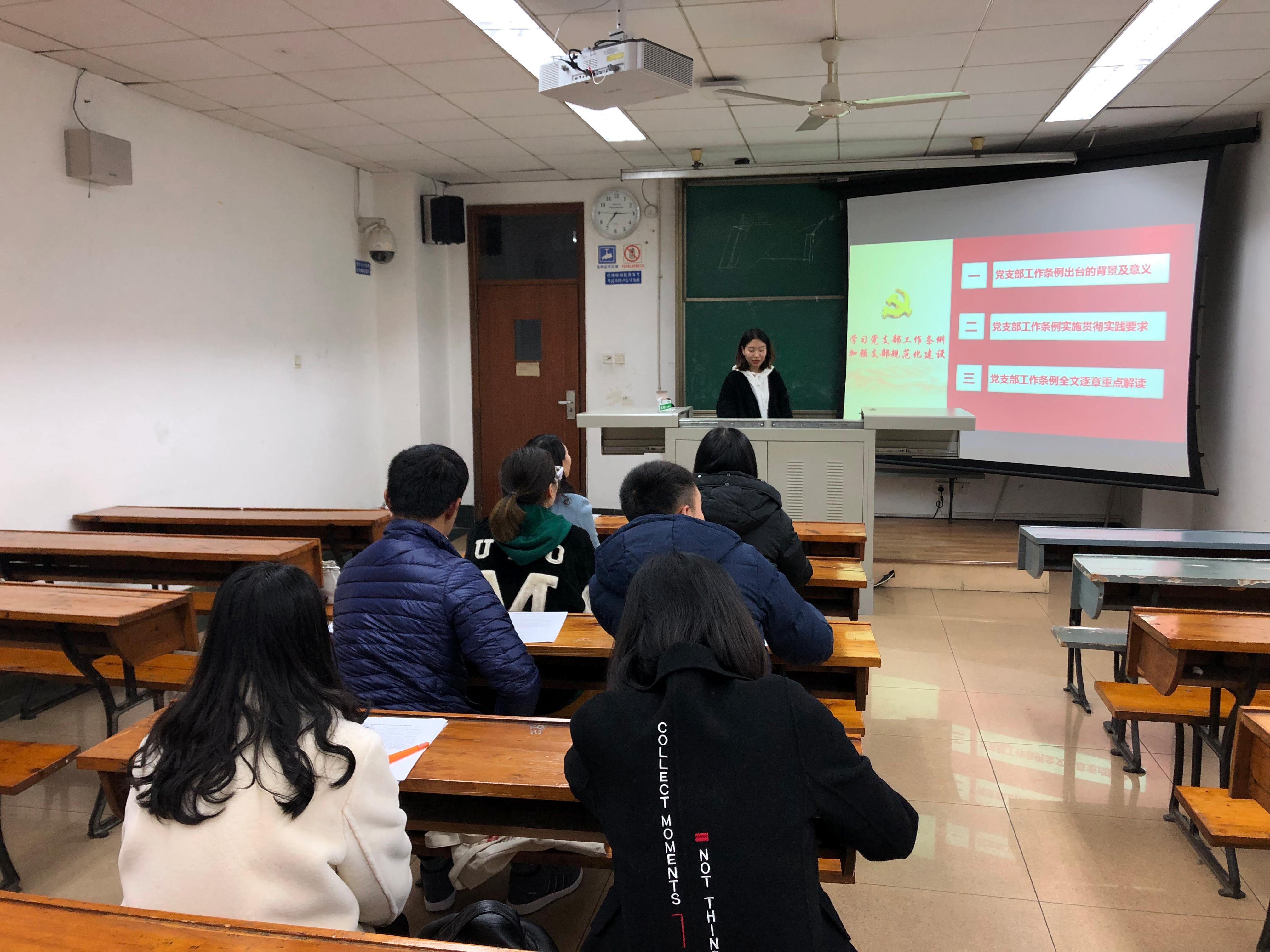 首先,王珏同志带领与会人员学习了《中国共产党支部工作条例(试行)》,学习主要围绕党支部工作条例出台的背景及意义、党支部工作条例实施贯彻实践要求和党支部工作条例全文的逐章重点解读三个部分进行。通过学习,同志们深刻理解了党支部工作条例实施要把抓好党支部作为组织体系建设的基本内容,巩固传统领域党支部建设,拓展建设新兴领域党支部,不断扩大覆盖面、着力提高组织力和领导力,突出政治功能、强化政治引领,推动党支部担负好直接教育党员、管理党员、监督党员和组织群众、宣传群众、凝聚群众、服务群众的职责。