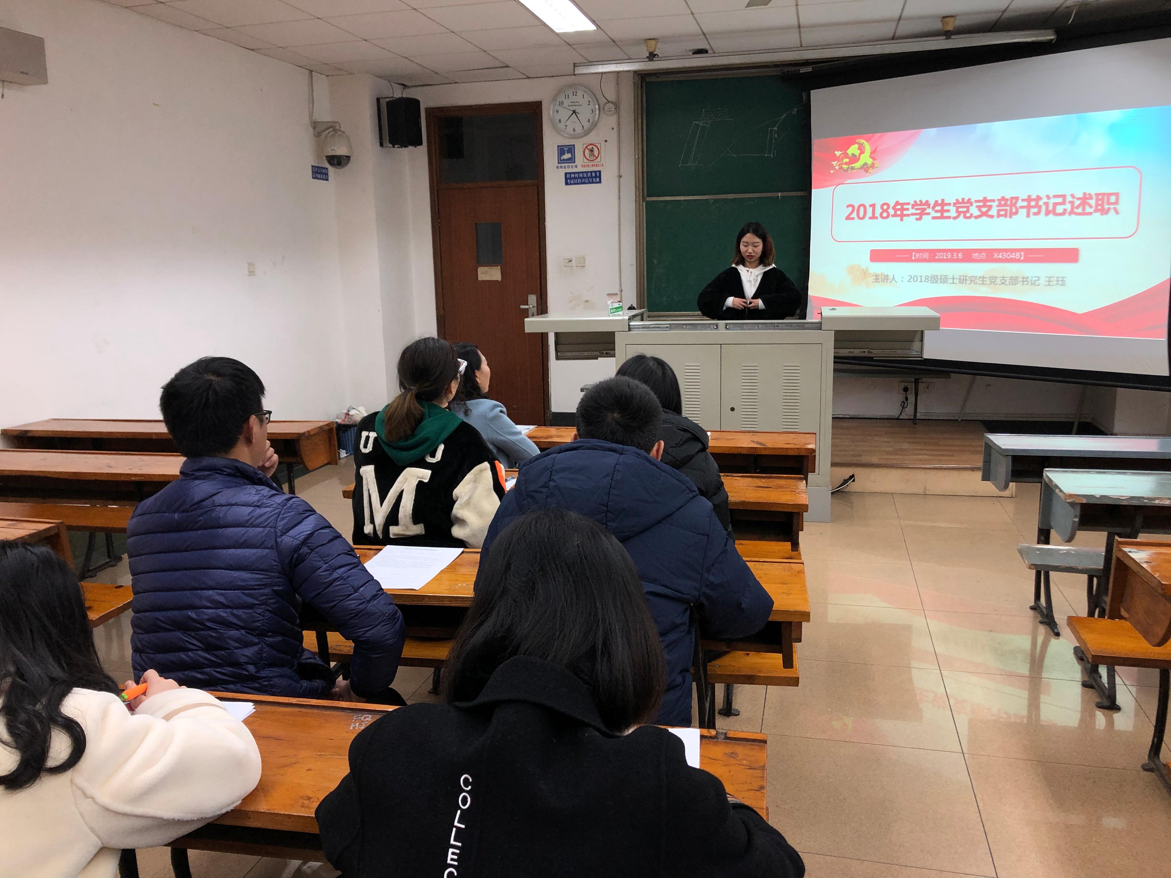 2018级硕士研究生党支部于36日晚7点在逸夫馆4304B教室开展组织生活会,专题进行党员民主评议活动。会议由党支部书记王珏同志主持,支部全体党员及支部指导老师贺妍同志参加了会议。