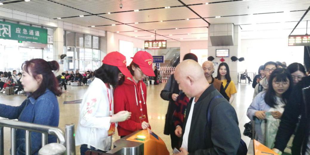上午8时,志愿者们准时开展服务活动。各位志愿者分别在进站口,站台,检票口、大厅等区域协助工作人员完成工作。位于进站口的志愿者维持进站秩序并热心解答旅客的问题;在候车大厅的志愿者帮助工作人员维持大厅内的秩序;位于站台的志愿者疏通人群;其余志愿者,分别在车站的检票口、电梯等位置维持秩序,帮助旅客解答问题。在工作期间,志愿者们向工作人员虚心请教。面对志愿者服务活动的突发状况,志愿者与工作人员共同努力,使问题得到以妥善解决。