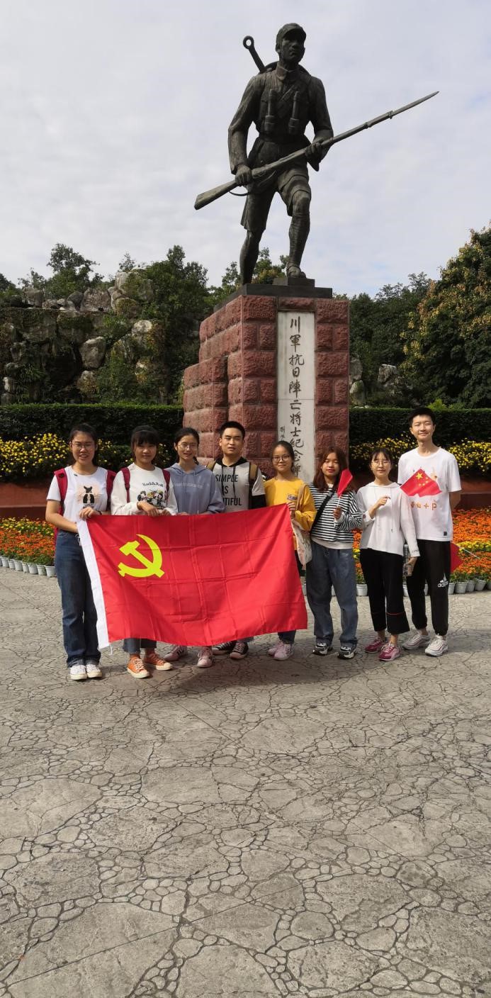 党支部成员于上午9:00在犀浦校区西门集合,前往人民公园,首先,党支部成员参观辛亥秋保路死事纪念碑,党支部副书记向月向大家介绍了四川保路运动的背景及意义,之后大家进行留影合照,并进行《我和我的祖国》合唱,拍摄祝福中华人民共和国成立七十周年的视频,大家爱国主义情绪高涨,纷纷表达对祖国的深切热爱。随后,党支部成员参观成都大轰炸纪念墙、川军抗日阵亡将士纪念碑等,了解到幸福生活的来之不易,感受到祖国的日益强大。