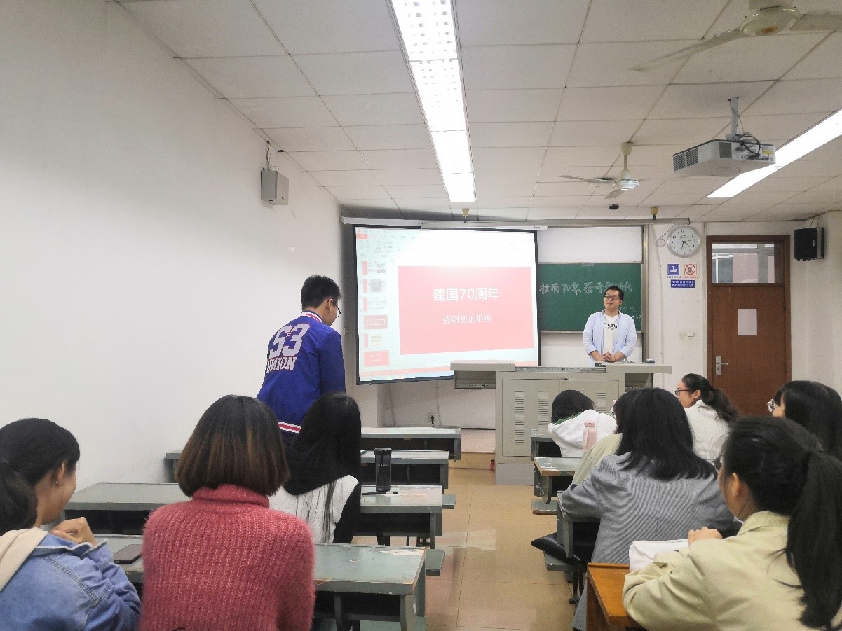 2019级研究生党支部在J4305A开展了“壮丽70载,奋进新时代”专题党课教育活动,全体党员聚集此地,聆听党支部书记讲党课,进行交流讨论和分享。