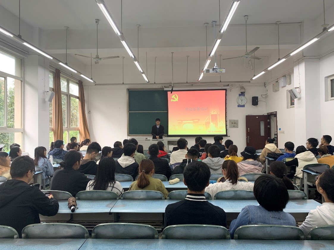 学生党员讲授党课,党课主题为“如何树立正确入党动机,争做合格共产党员”。