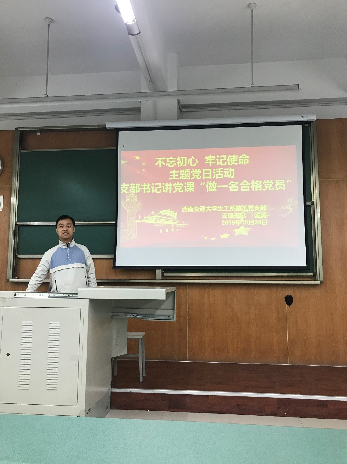 1024日下午14:00,生工系教工党支部书记孟涛同志在犀浦校区4156为全支部党员同志讲党课。他首先谈到“初心”体现本质属性、价值追求,“使命”体现历史担当、奋斗目标。我们党的初心和使命,是党的先进性和纯洁性的集中体现,是激励一代代中国共产党人前赴后继、英勇奋斗的根本动力。“不忘初心、牢记使命”,既是马克思主义的逻辑起点,也中国共产党人的实践起点。马克思与恩格斯在《共产党宣言》中强调“过去的一切运动都是少数人的,或者为少数人谋利益的运动。无产阶级的运动是绝大多数人的,为绝大多数人谋利益的独立的运动。”正是带着这样的初心与信仰,中国老一辈无产阶级革命家在探索救国图存的道路上高举马克思主义的伟大旗帜,为着人民的利益,踏着英雄的身躯和血迹前行。回顾过往百年风雨,我们始终铭记在经历一场场浴血奋战,一次次转危为安后,坚忍不拔的中国共产党才能在夹缝中发展壮大,推翻“三座大山”,建立社会主义国家。