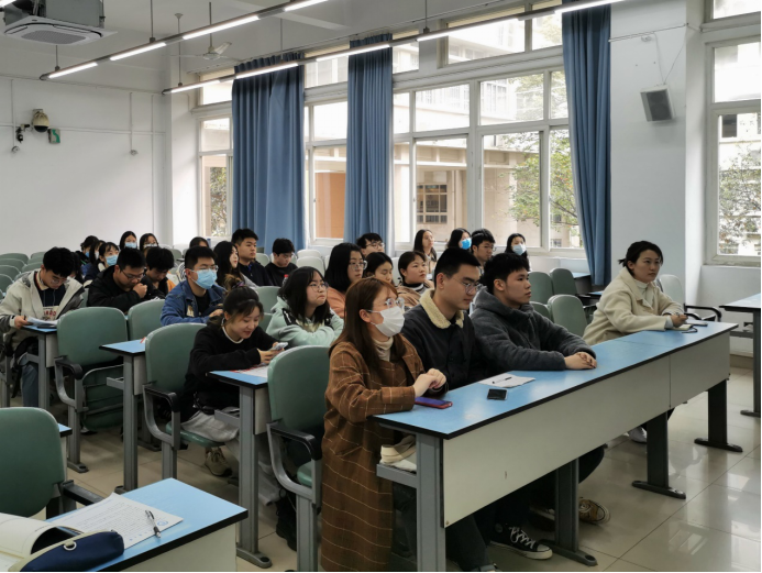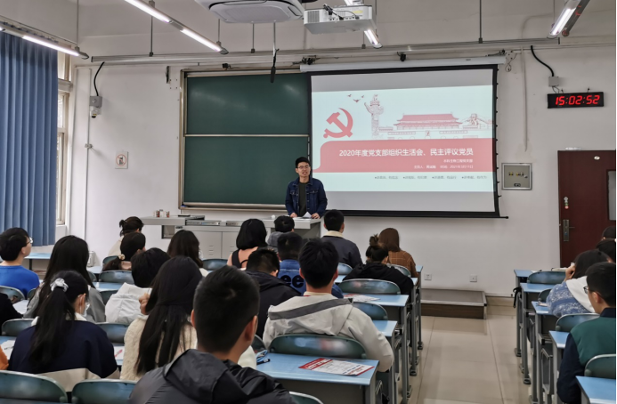 接下来,由本科生工党支部书记黄斌翰同志对2020年度本科生工党支部工作进行总结汇报。首先是对党支部各项工作展开情况及数据的阐述说明,因为疫情原因2020年度党支部各项活动数据比往年减少一半,党支部活动量大大减少,对党支部成员的培养和发展也产生滞后现象。随后黄斌翰对下一年度党支部主要活动进行规划。他指出,在新的2021年将要规范党支部组织建设,构建“服务师生”机制,严格加强对新生党员的教育培养,同时尽快将党支部活动回归常态。