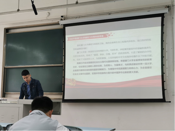 首先是学习教育的第一部分,由黄斌翰同志带领支部成员学习习近平致厦门大学建校100周年的贺信精神。总书记在贺信中强调要全面贯彻党的教育方针,切实落实立德树人根本任务,为党育人、为国育才。这不仅是对厦大的期许,更是为全国高校建设指明方向。经过学习,支部成员将以贺信精神为指引,奋力前行,勇做走在时代前列的奋进者,勤奋学习科学文化知识,不断创新创造,努力成为栋梁之材。