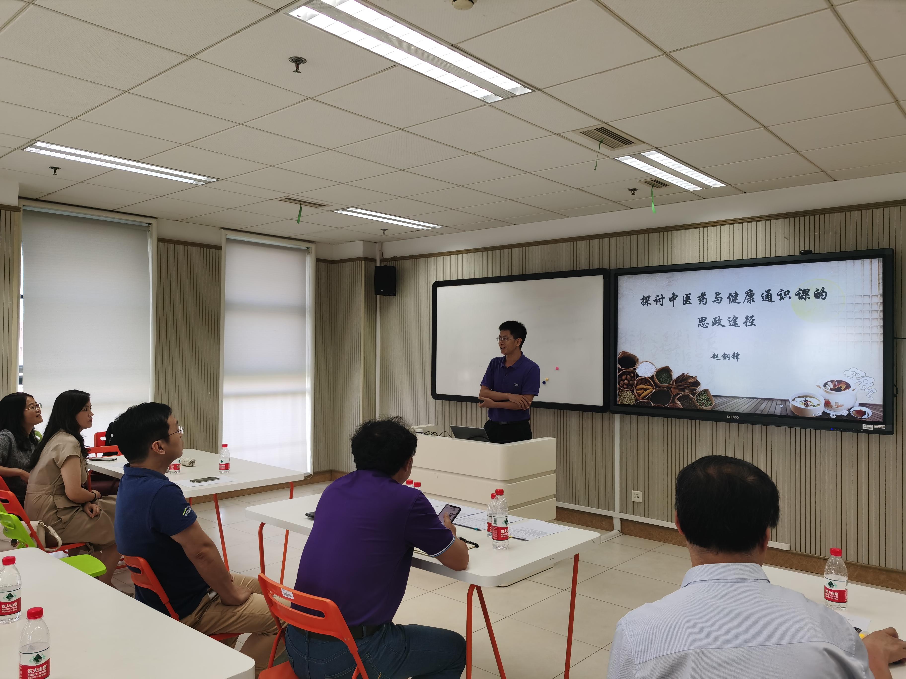 赵钢锋老师以“探讨《中医药与健康》通识课的思政途径”为主题,从实现中华民族伟大复兴的中国梦,到高校立德树人的根本任务,分析了课程思政的重要性,又结合学院专业专业的特色,从思想、文化、方法、情怀等四个方面阐释了《中医药与健康》通识课程的课程思政实践。