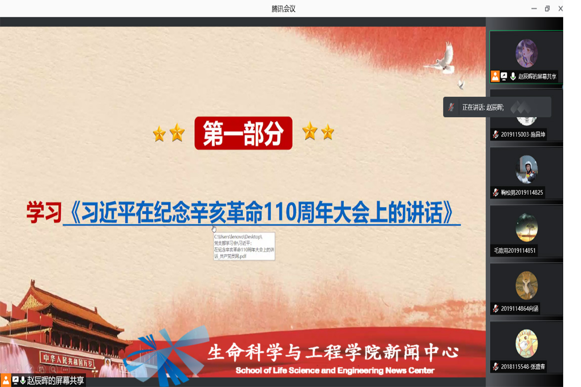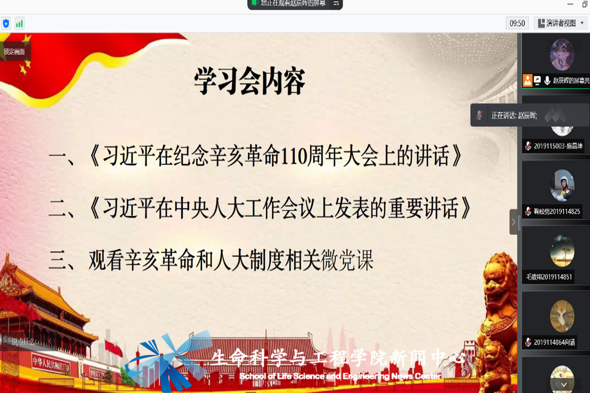 本科生物工程党支部于2021年10月25日下午8时,组织支部成员开展了主题为“中国共产党百年与政治制度建设”的线上学习会议。本次会议由赵辰晖同志主持。