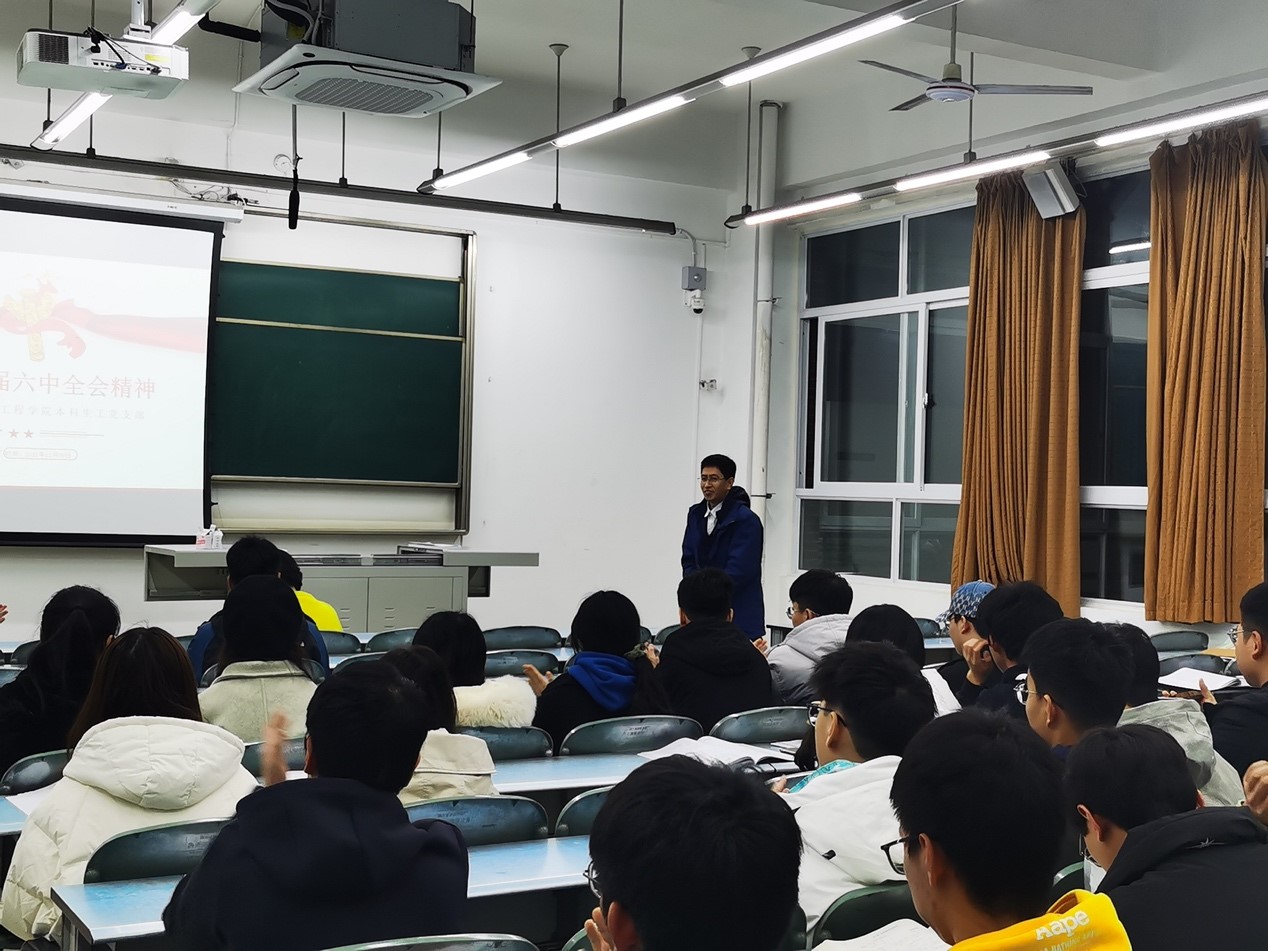本科生工党支部开展了“贯彻十九届六中全会精神”主题学习,参会人员有学院党委副书记、纪委书记赵钢锋老师、专职组织员孔琳老师、本科生物工程党支部书记胡慧怡老师以及53名学生党员、预备党员、积极分子,会议由陈中炜同志主持。