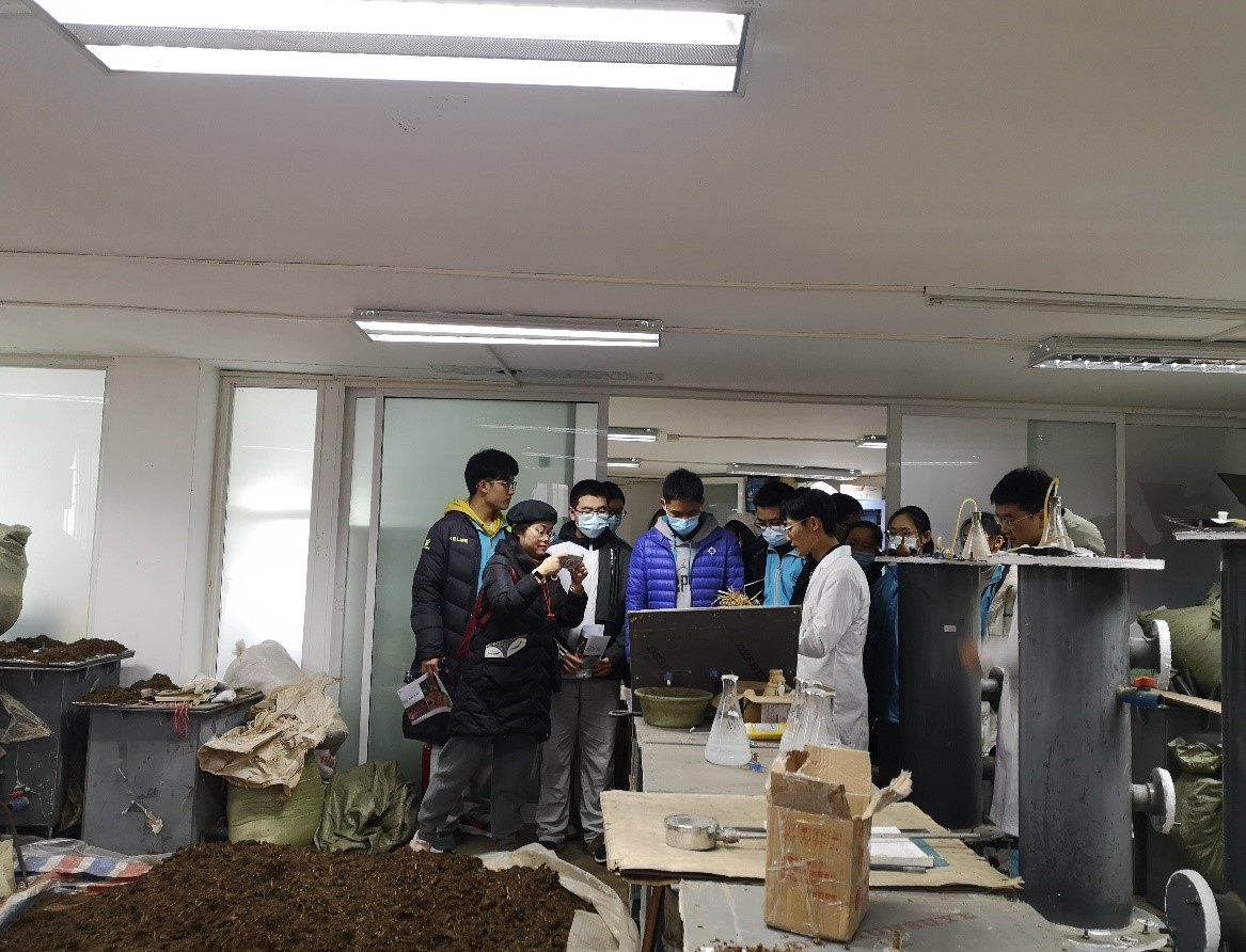 参观了廖海副教授和周嘉裕副教授课题组的实验室后,同学们来到邱忠平教授课题组的资源与环境生物技术实验室,进一步学习和了解微生物在秸秆堆肥、有机垃圾填埋中的应用。刘力风、李建鹏、吴晗等研究生向同学们详细介绍了秸秆变成有机肥的过程及微生物在这个过程中的作用,讲解了实验室填埋装置和工作原理,并鼓励同学们以后可以多学习微生物知识,从事相关的研究。