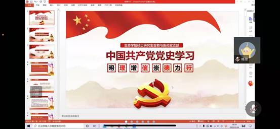 硕士研究生生物与医药党支部线上开展了党史学习教育会议。会议由党支部宣传委员马婧主持。参加人员为支部党员、发展对象、积极分子以及入党申请人等60余人。