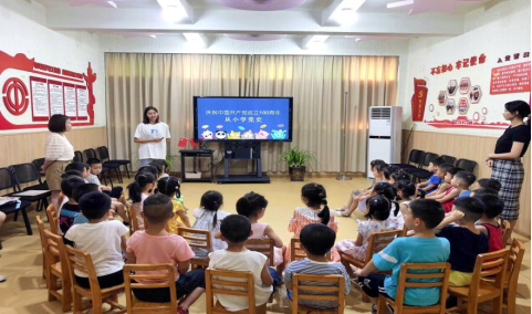 到达幼儿园后,通过与幼儿园园长沟通交流,由幼儿园老师引导小朋友们集中到教室进行党史教育。成人直播