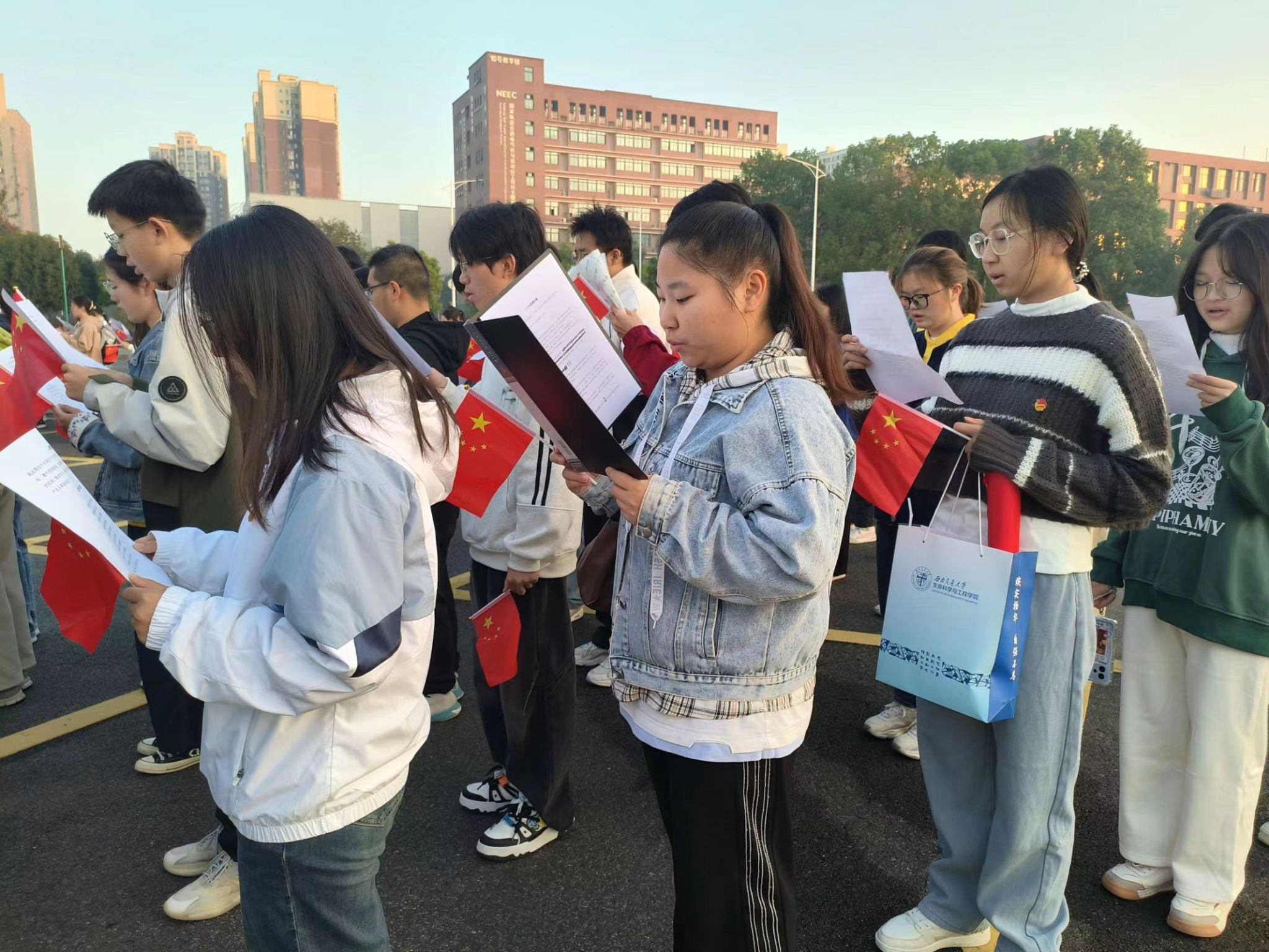 团委于10月23日举行“我当升旗手”主题团日活动,以独特的方式向伟大的祖国致以最高的敬意。学院团委书记杨颖增老师、团委副书记潘星宇老师、2024级各班团支部书记、团建中心全体学生干部、团员代表等100余人参加了本次活动。本次活动不仅是对祖国繁荣昌盛的美好祝愿,亦是学院团委开展爱国主义教育的一次生动实践。