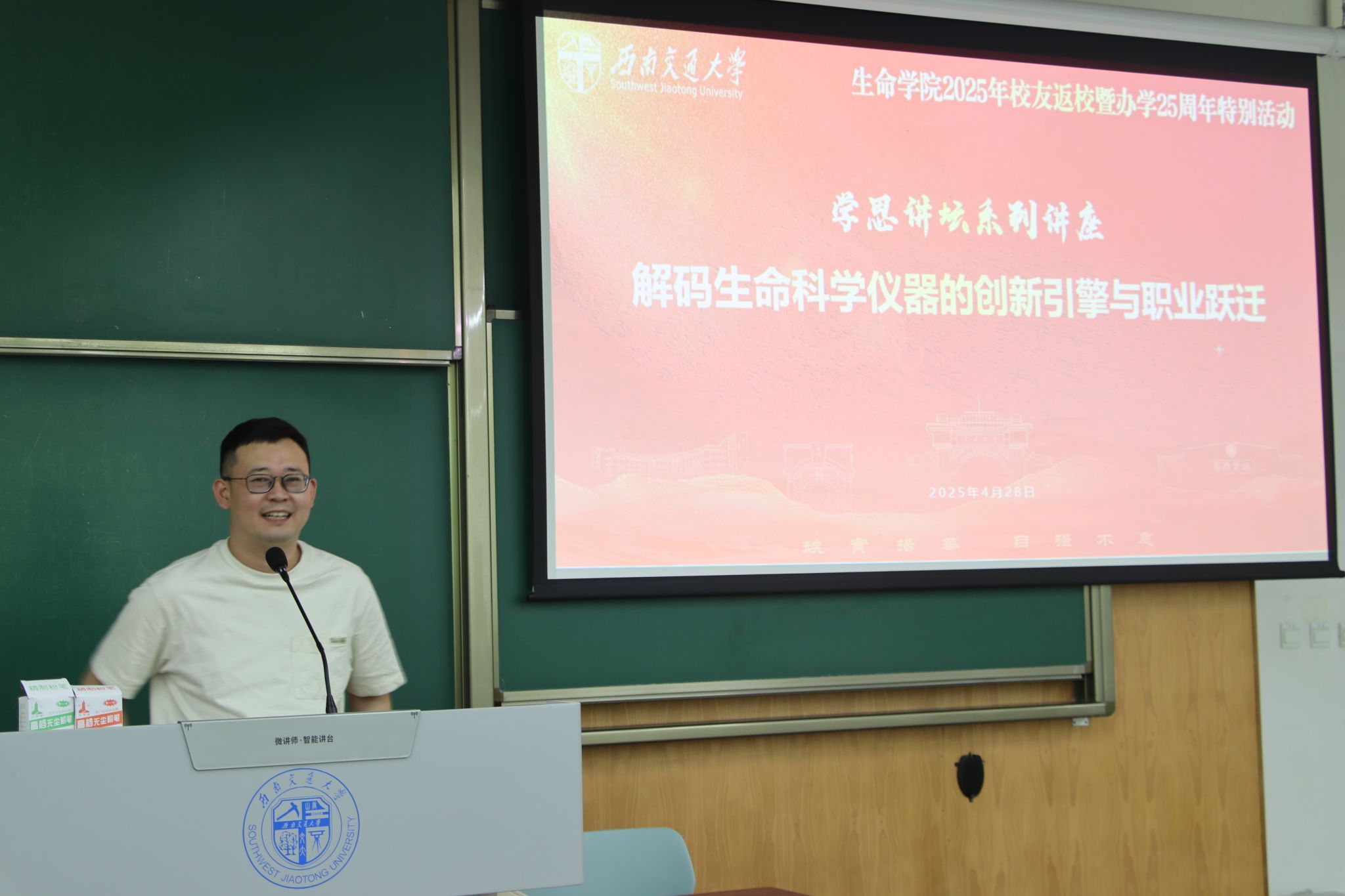 办学25周年特别活动安排,4月28日下午,《解码生命科学仪器的创新引擎与职业跃迁》主题分享于犀浦校区X4158举行。成都雄毅科技有限公司董事长何健雄、总经理宋利平、副总经理贾文武、行政经理叶玉凤、成人直播
