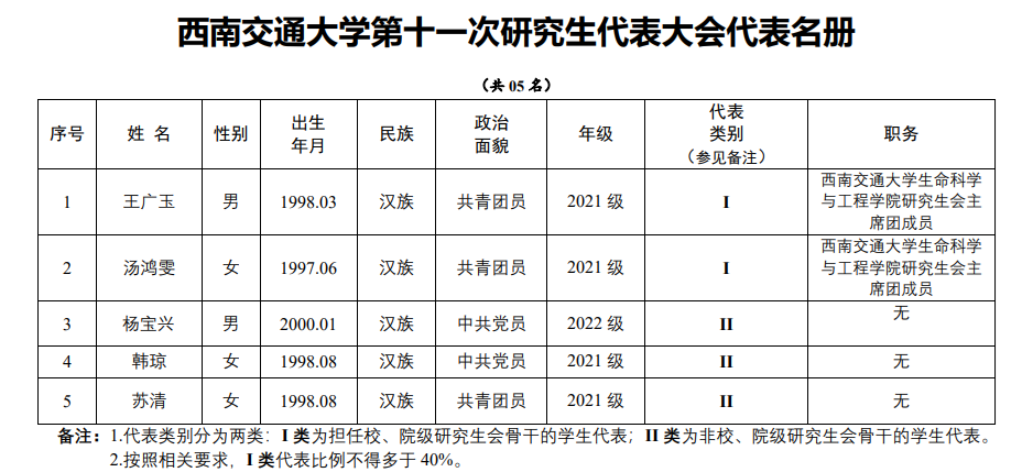 根据校团委《关于做好成人直播 第十一次研究生代表大会筹备工作的补充通知》要求,在征求学院研究生会意见后,经班级团组织推荐,由学院团组织考察,现将成人直播 参加成人直播 第十一次研究生代表大会代表名单及成人直播 第十一届研究生委员会委员候选人名单公示(见附件)。推举结果公示如下