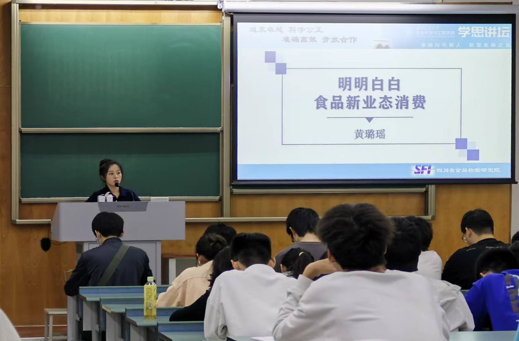 承办,四川省食品检验研究院高级工程师黄璐瑶老师主讲,约百余名师生参与了本次讲座。