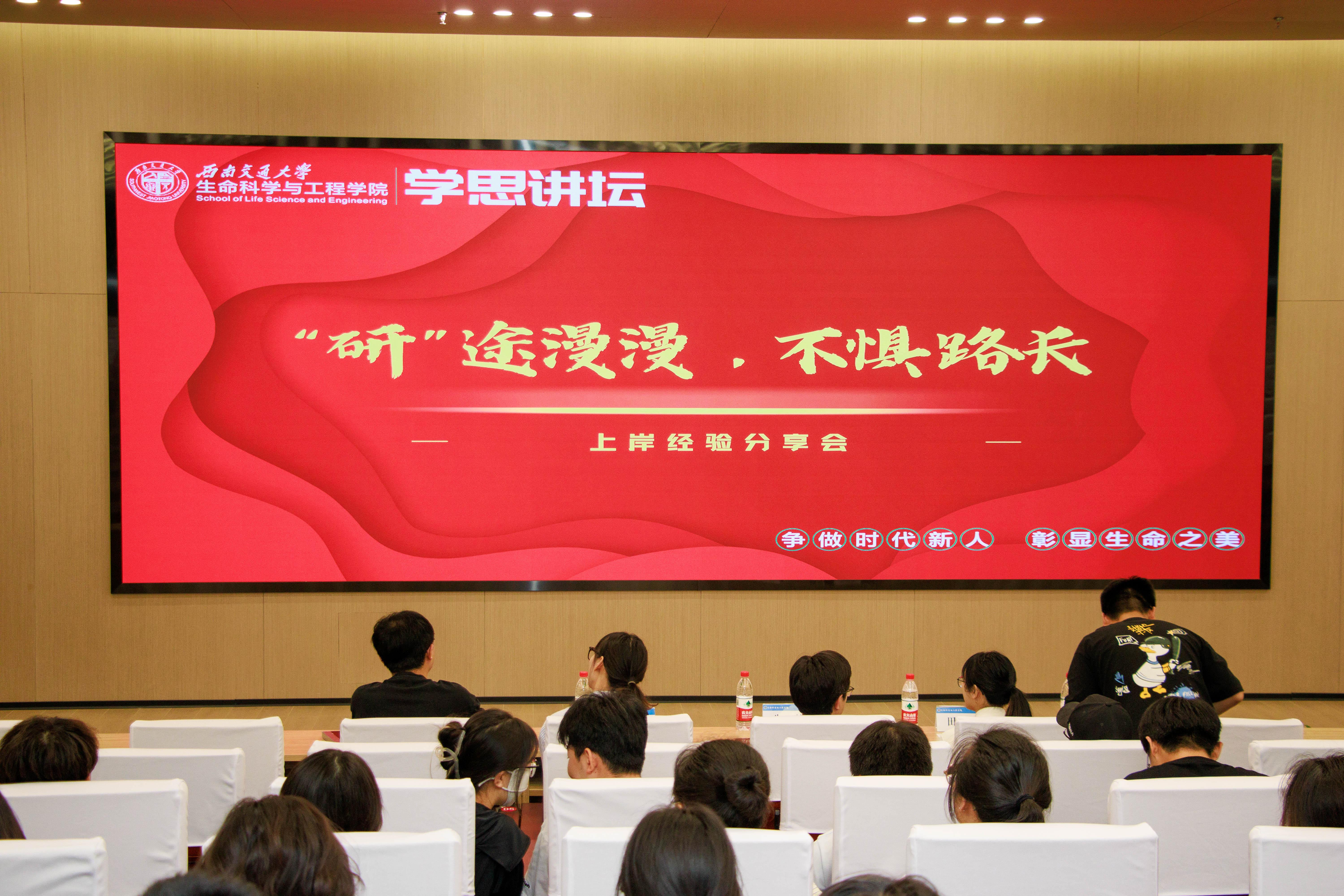 于图书馆二号报告厅开展学思讲坛之“研途漫漫,不惧路长”考研经验分享会。活动特邀刘俊男、田星怡、陈中炜三位高分上岸的同学分享备考经验,成人直播