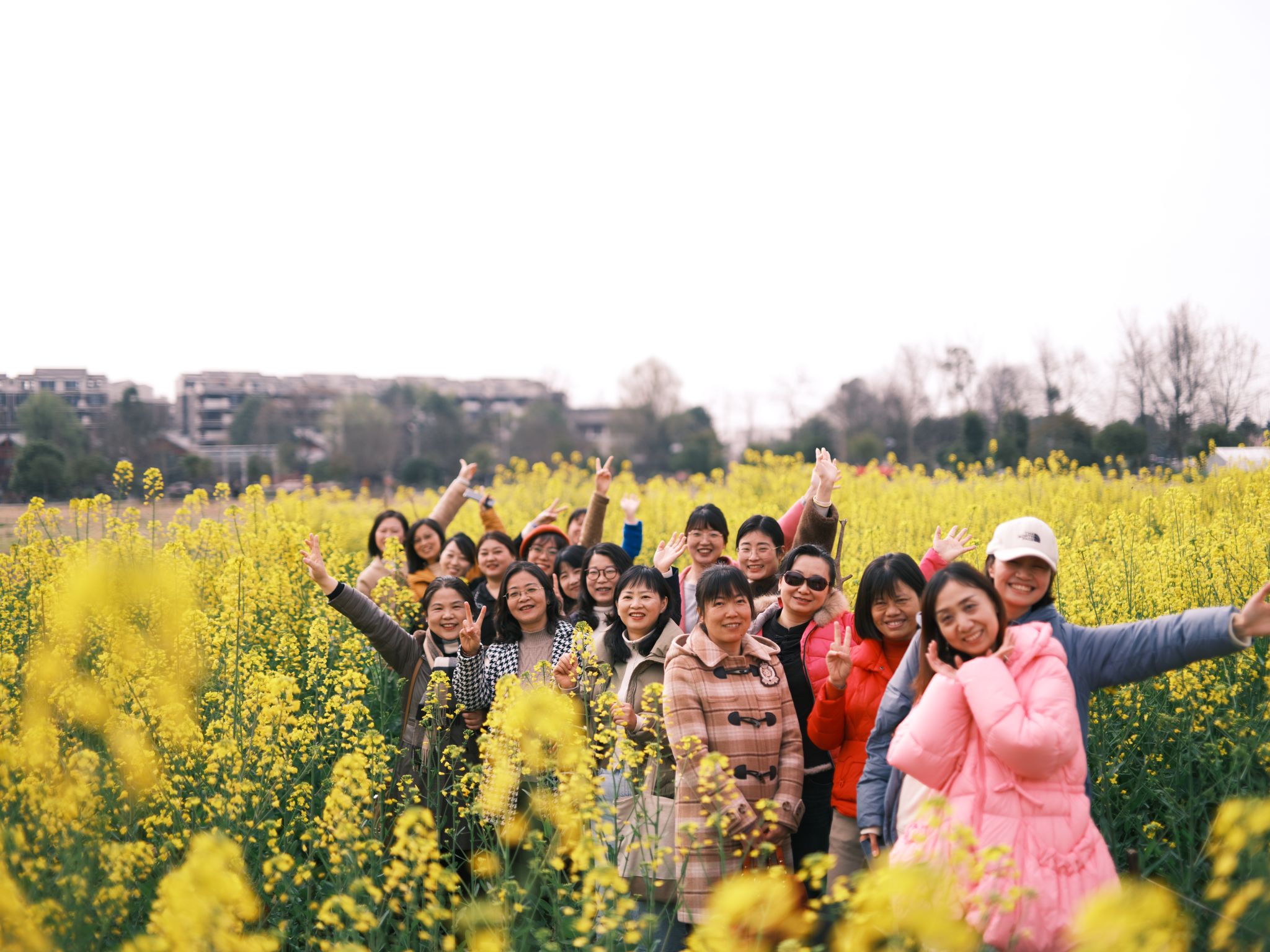 三道堰“依水而居,依水而兴”,古镇里传统川西古建筑与徽派建筑风格相结合,别有一番风味。正值阳春三月,春风和煦、阳光明媚,油菜花盛开,学院的女老师们漫步在古镇里,徜徉在花海中,有一种人在画中行之感。