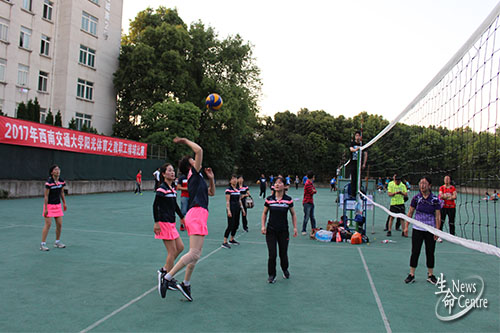 教职工排球赛在九里校区排球场激烈进行。在本场比赛中,女子B组成人直播