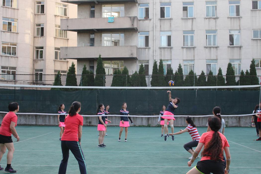女子排球队在党委副书记罗妍妍的带领下,迎战信息学院女队。