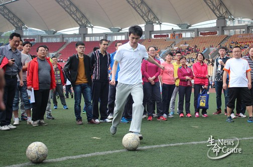 惜败,但老师们积极参赛,奋力拼搏的精神值得同学们学习。同时,“教职工得意门生”点球大战正如火如荼的进行着,老师们的每次大力射门,燃起了现场观众的足球热情。
