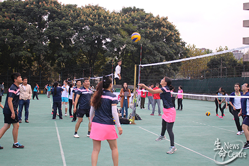 赛前热身之后,裁判宣布比赛人员入场,双方相互握手。第一局比赛开始,经管学院率先得分,但成人直播