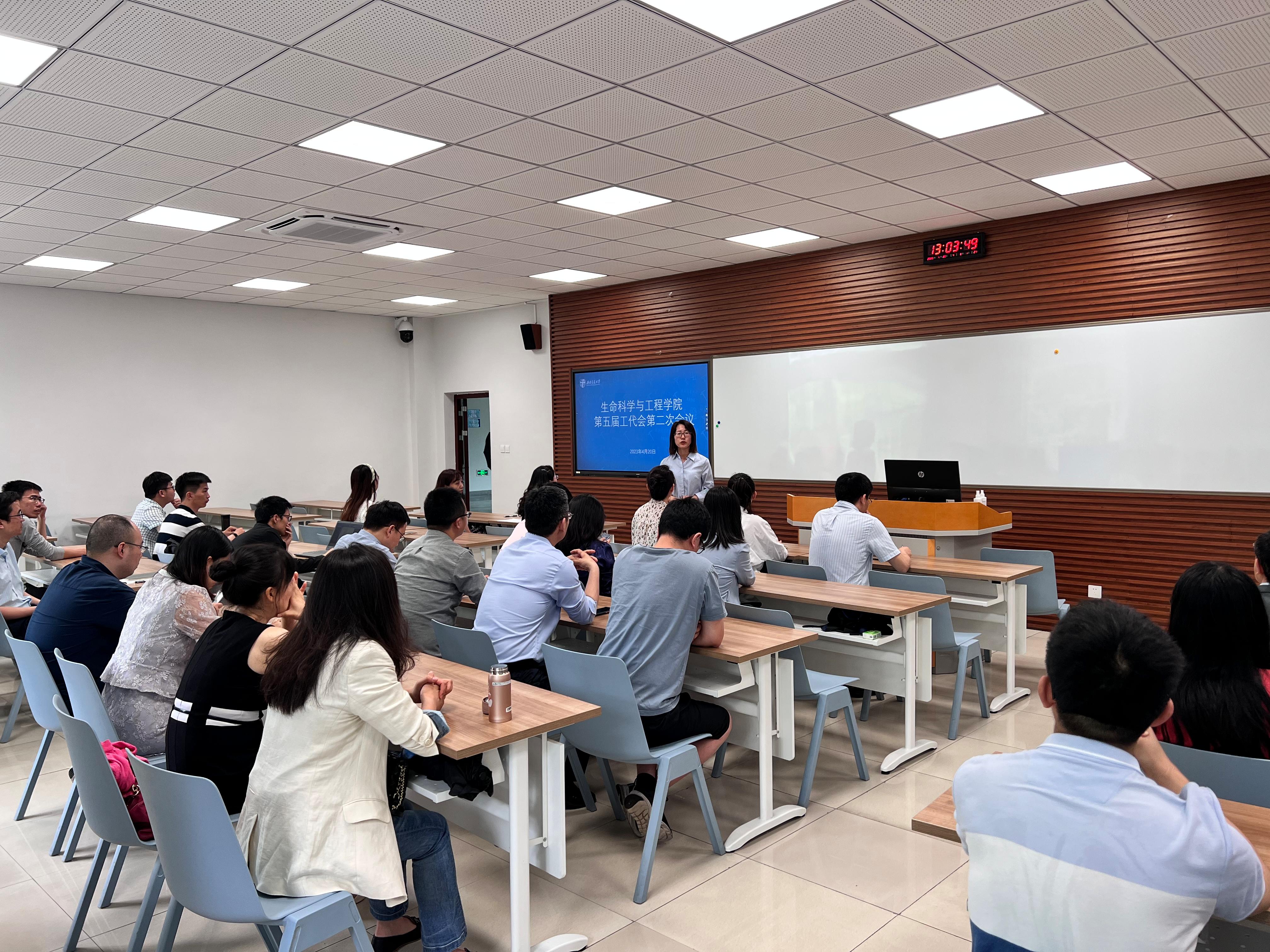 第五届工代会第二次会议在X1201顺利召开,会议由院工会副主席陈琳同志主持,27位学院工会会员代表参加会议。