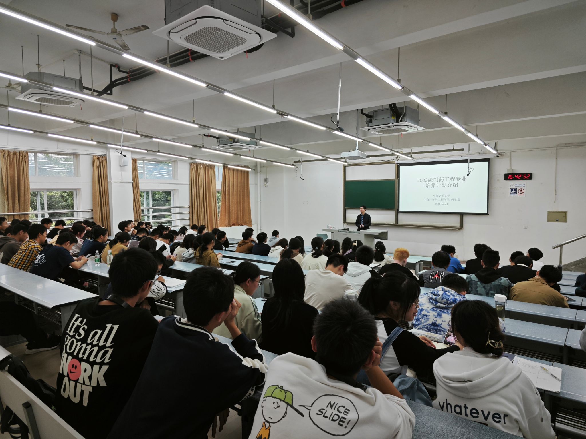 为在新生入学教育阶段贯彻落实学校和学院规定,使2023级本科新生深入了解本专业情况,尽早适应大学学习生活节奏,进行相应的学习规划,我院药学系于10月26日下午16:30分在X1314教室举行制药工程专业介绍会。介绍会由制药工程系教师蒋合众副教授主讲。