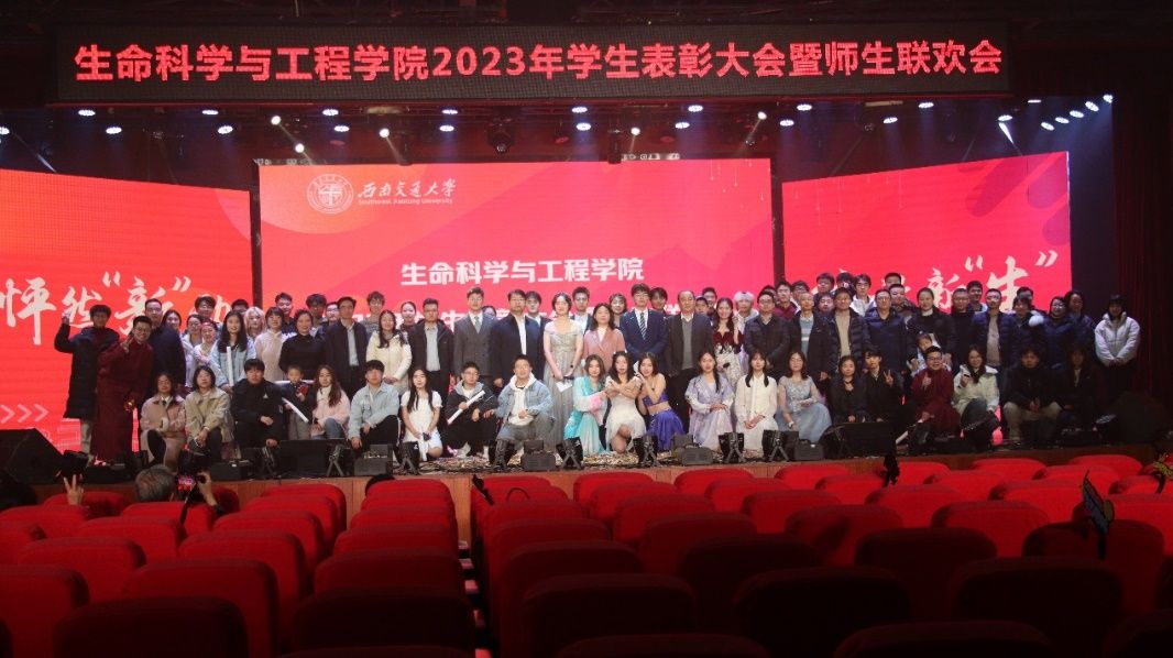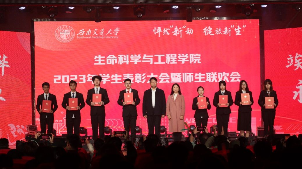 2023年学生表彰大会暨师生联欢会在犀浦校区大学生活动中心举办。晚会以“怦然心动·绽放新生”为主题,学院党委书记黄春蓉、校团委书记武俊、党委学生工作部副部长邢晓鹏、研究生院学位办副主任宛小强、中公教育四川分公司市场运营总监蒋亚东,学院副院长李遂焰、副院长高峰、党委副书记朱炜,院长助理陈琳、黄新河、王毅,以及各兄弟学院团学组织的指导老师,学院办公室、学生支持办公室(教务)、学生工作组、团委、生物工程系、药学系、实验中心的老师们和600余名本研同学们欢聚一堂,共同回顾2023,喜迎2024。
