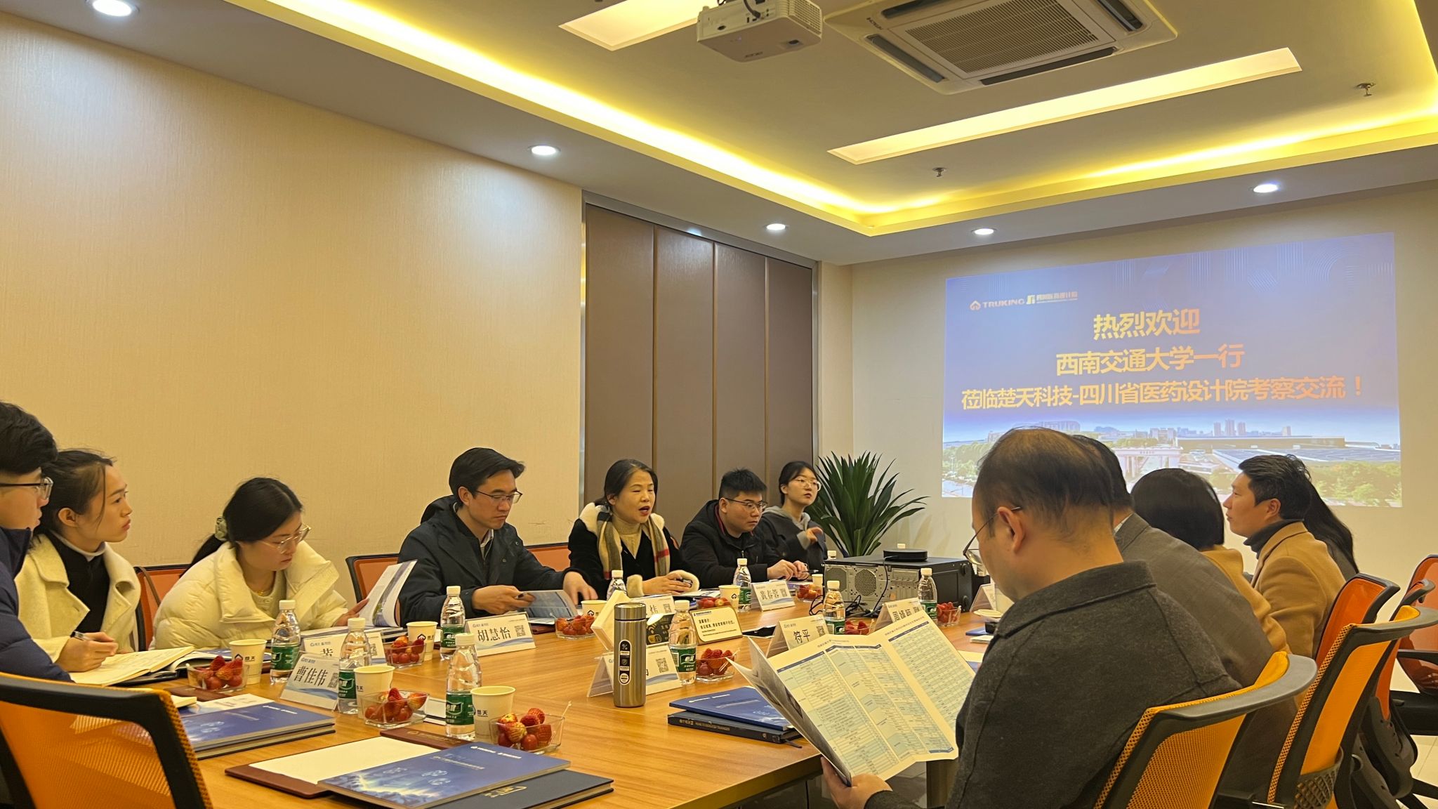楚天科技集团行政与人力总裁、四川省医药设计院院长周婧颖,副总工程师符平、专业副总工王鹏、人事经理张波波等接待了西南交大一行,双方围绕校园招聘、人才需求、学生实习实践、生涯教育等方面展开深入交流研讨,并就进一步推进校企合作、科研合作等方面达成意向。