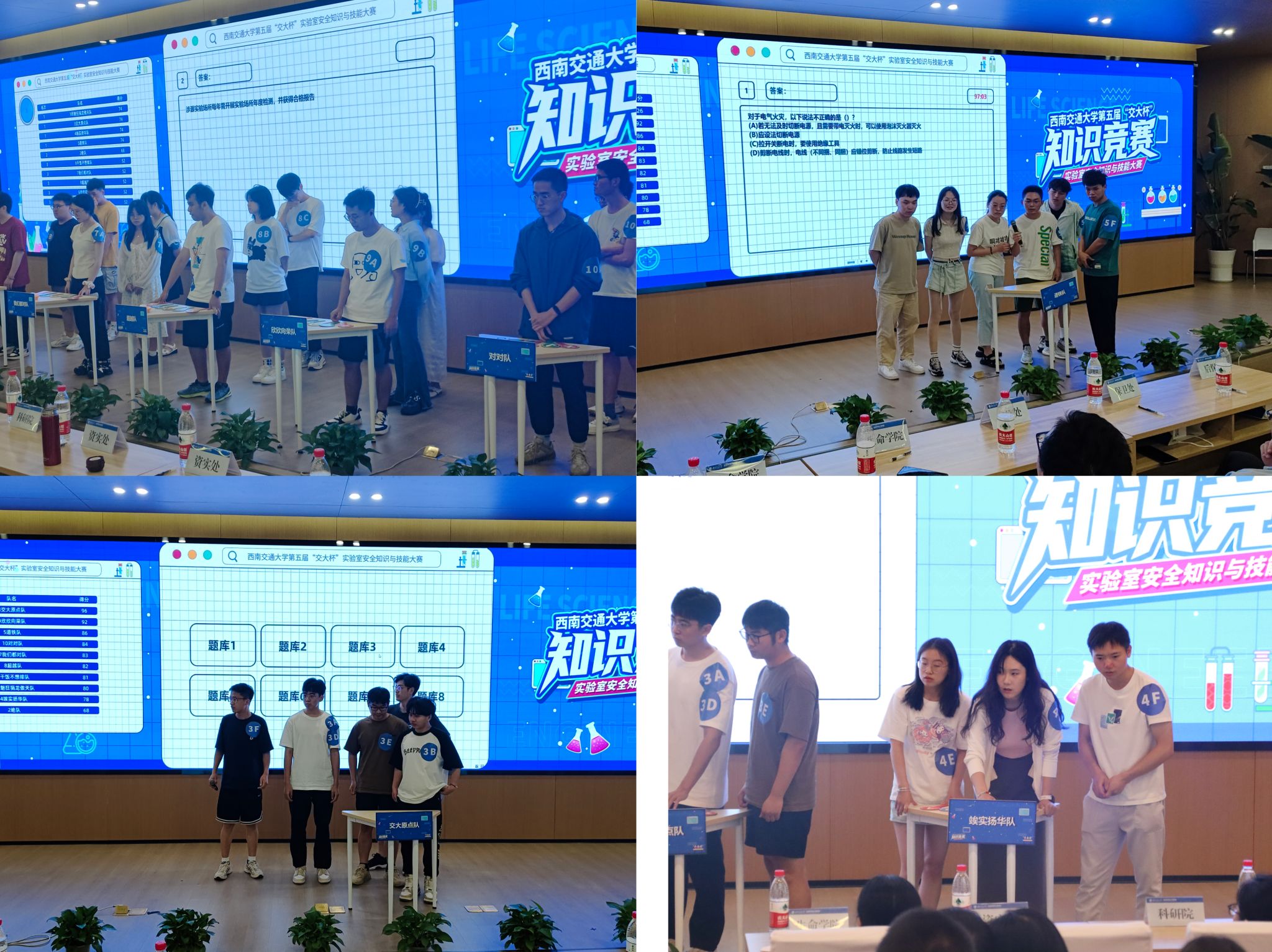 在知识竞赛类赛道,10支队伍激烈竞争,相互切磋,各位选手冷静思考,与小组成员相互配合,展现出了积极的精神风貌与扎实的实验室知识基础,经过了“个人必答”、“小组抢答”、“争分夺秒”三个环节激烈竞争,最终“交大原点队”荣获一等奖,“欣欣向荣队”、“道铁队”、“对对队”获得二等奖,“竢实扬华队”、“超越队”、“我们都对队”、“邪魅狂狷龙傲天队”、“干饭不想排队”获得三等奖。