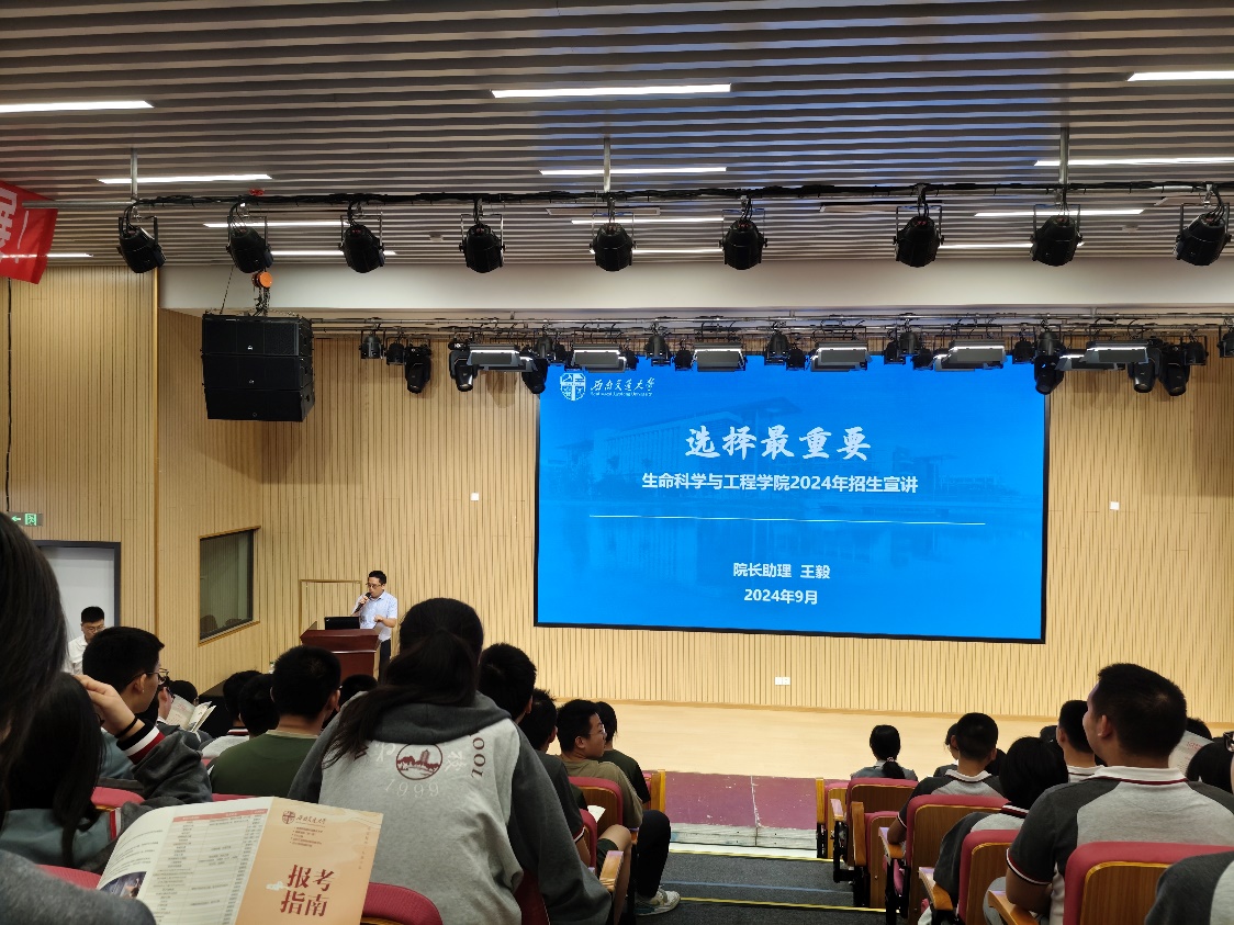 院长助理王毅在该校明志厅向400余名高三学生进行线下招生宣传讲座,鼓励成都青白江区为明学校的高中同学努力学习,积极报考成人直播