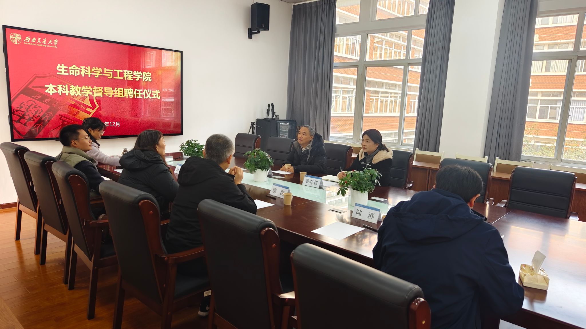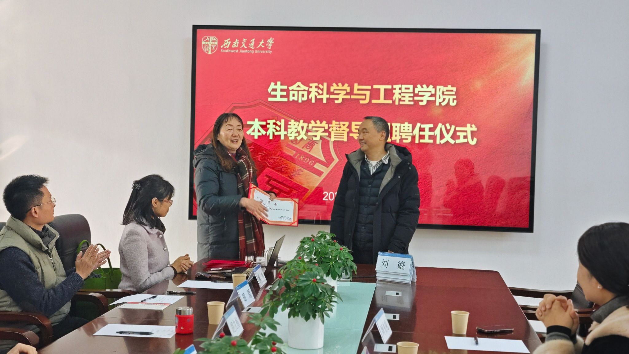 12月16日下午,生命学院在X2314会议室隆重举办了本科教学督导委员会的聘任仪式。学院退休教师胡久梅、喻凯和王万军被聘为新一届本科教学督导组成员,周先礼院长和黄春蓉书记代表学院祝贺新一届督导组成立,并为督导组成员颁发聘书,陈琳副院长主持了聘任仪式。
