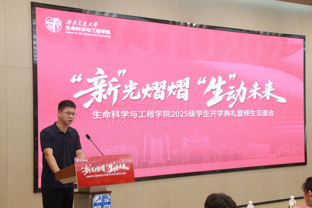 班导师代表、生物工程系教师李西林结合自己丰富的科研教学经验,分享了对教育的热爱和对学生的期望:一是希望大家在大学生活中照顾好自己,力求行得稳健;二是希望同学们做好自我管理,力求在学习中跑得轻快;三是希望同学们早日实现从“被动接受”到“主动探索”的跨越,力求在大学阶段跳得高远。
