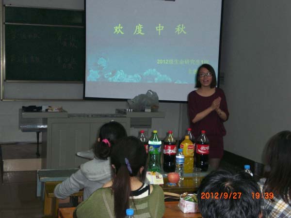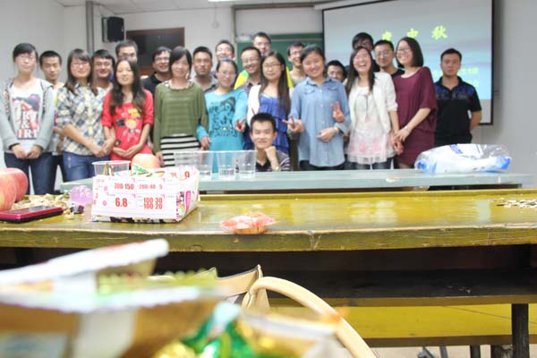 一班的同学们在此举行“迎中秋晚会”,迎接他们在研究生阶段的第一个热闹、欢乐的中秋节。